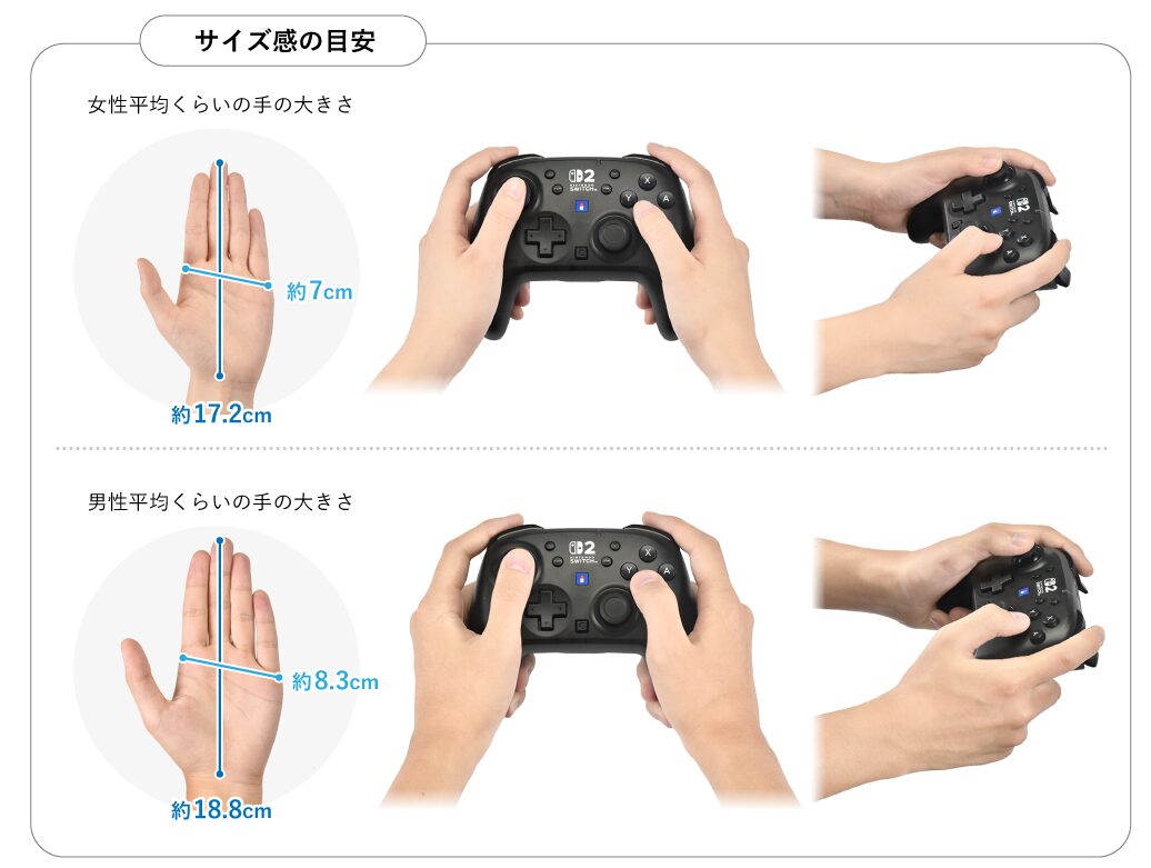 他にもSwitch2から追加された「ゲームチャット」を起動するためのCボタン、アサイン機能で使用するための背面ボタン、対戦中に不意な誤操作を防止するためのボタンロック機能なども搭載。