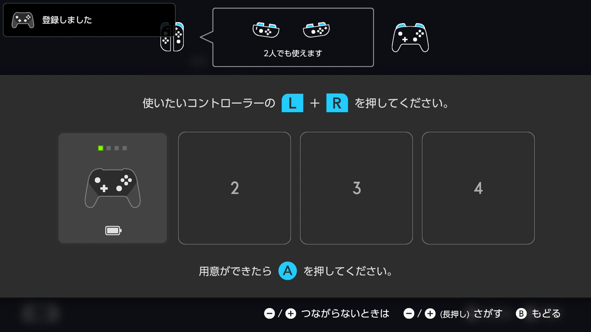 一度ペアリング設定すれば、次回以降は「持ちかた/順番を変える」の画面でAボタンを押すだけで使えるようになります。