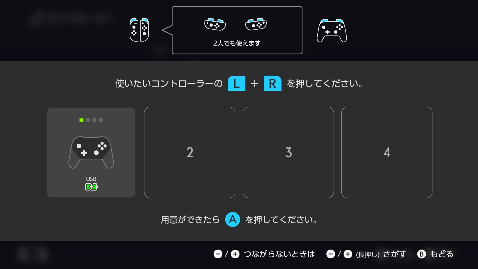 ※Switch/Switch2ならドック横のUSBに挿す - コントローラの電源を入れる(ロゴマーク2秒長押し)