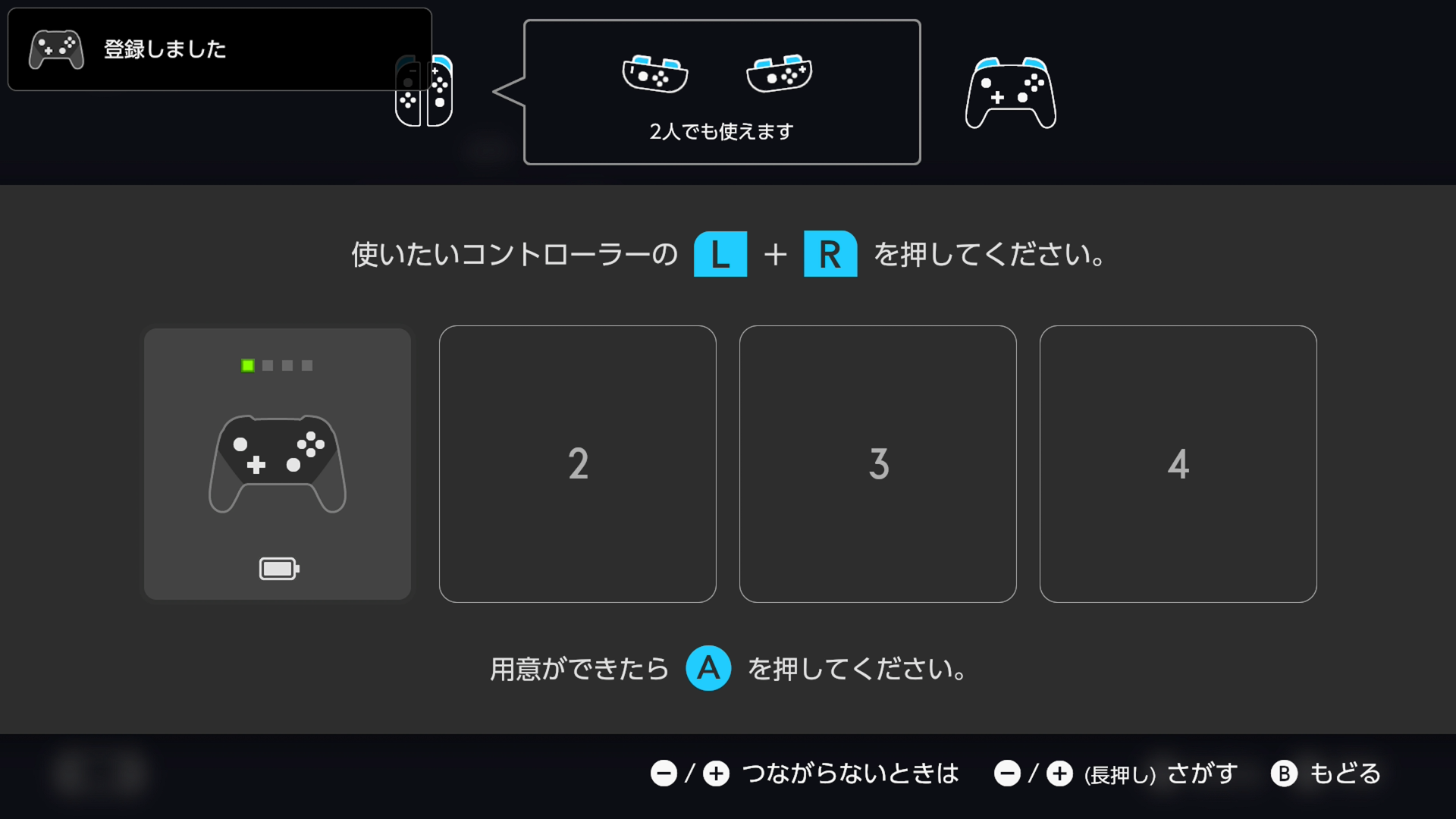 - コントローラ上部のペアリングボタンを長押しして接続完了