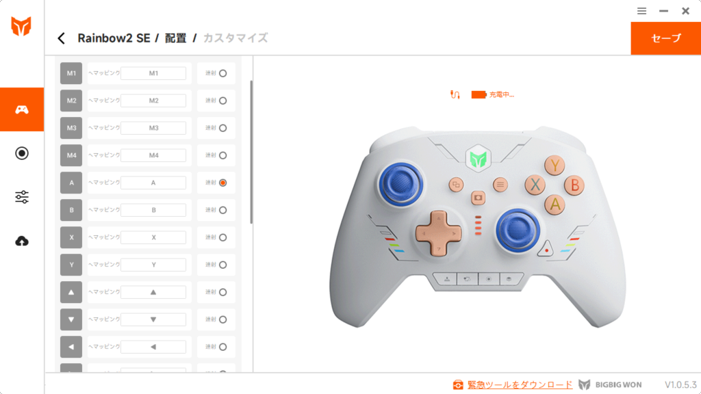 ⇒一度、ボタン配置設定など他の設定画面を開くと挙動が安定しやすいです。また、必ずアプリを終了してからコントローラをケーブルから抜き差ししましょう。
