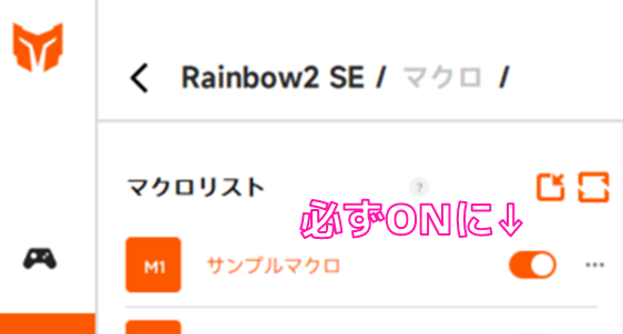 スマホアプリでマクロの設定をしたい場合、同社のシリーズ製品である「CHOCO」「Rainbow2 Pro」の購入を検討ください。