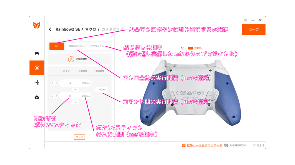 - 専用PCアプリがエラー落ちしやすく、マクロを保存する前に強制終了してしまうことがあった