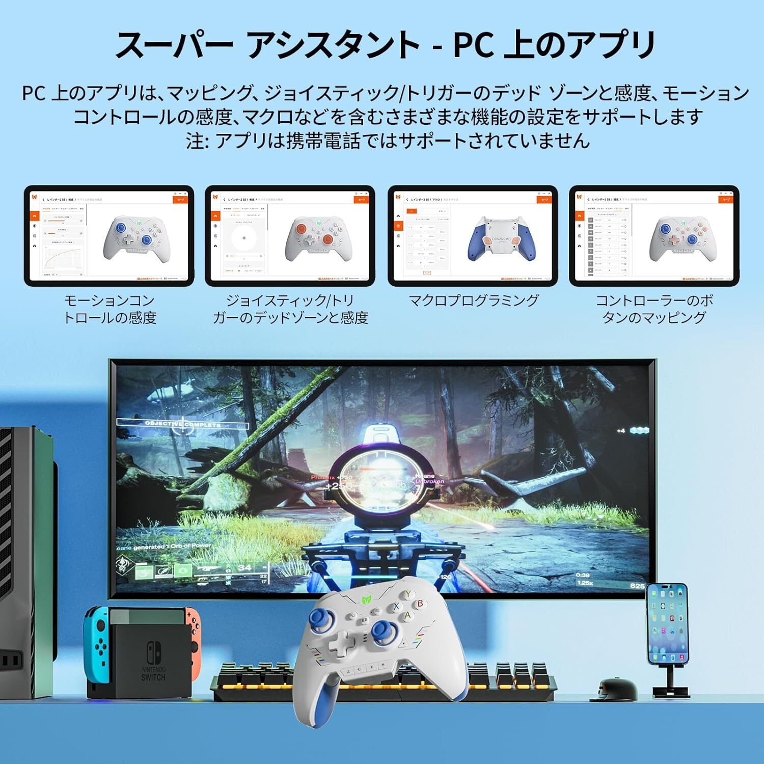 ■専用アプリでマクロ、ボタン割り当て、スティックとトリガーのデッドゾーンと感度を設定可能