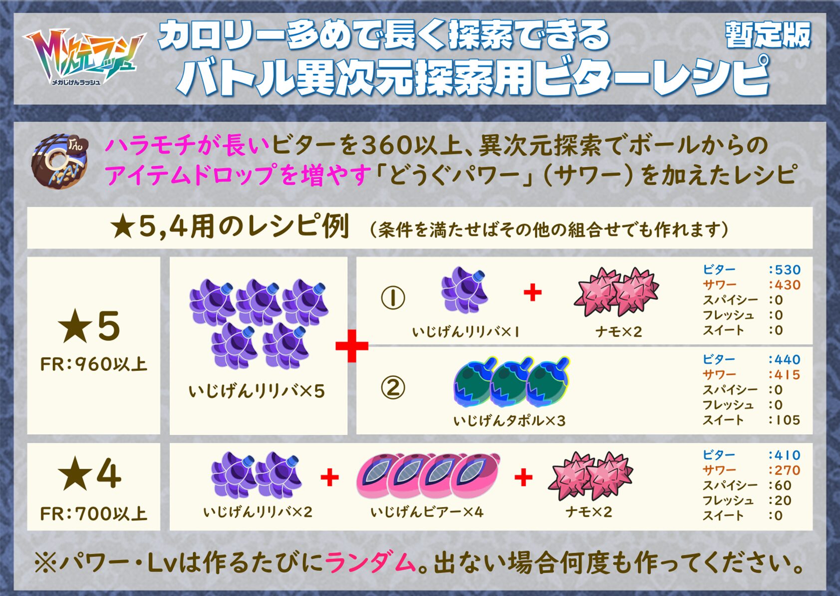 ★4用のレシピは★5異次元で使うと滞在時間はせいぜい3分程度のため、