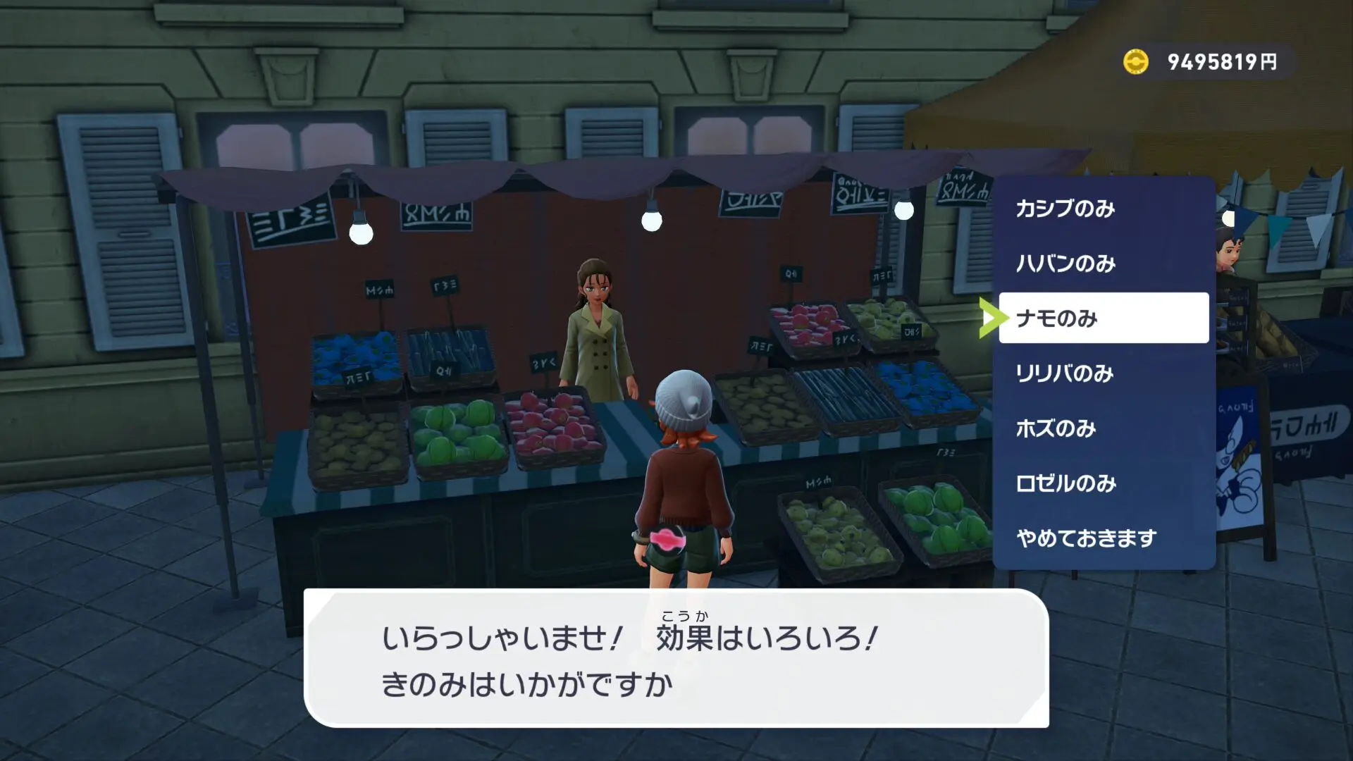 3番ワイルドゾーン西にある屋台エリアで18種類すべての半減きのみを買うことが可能です。
