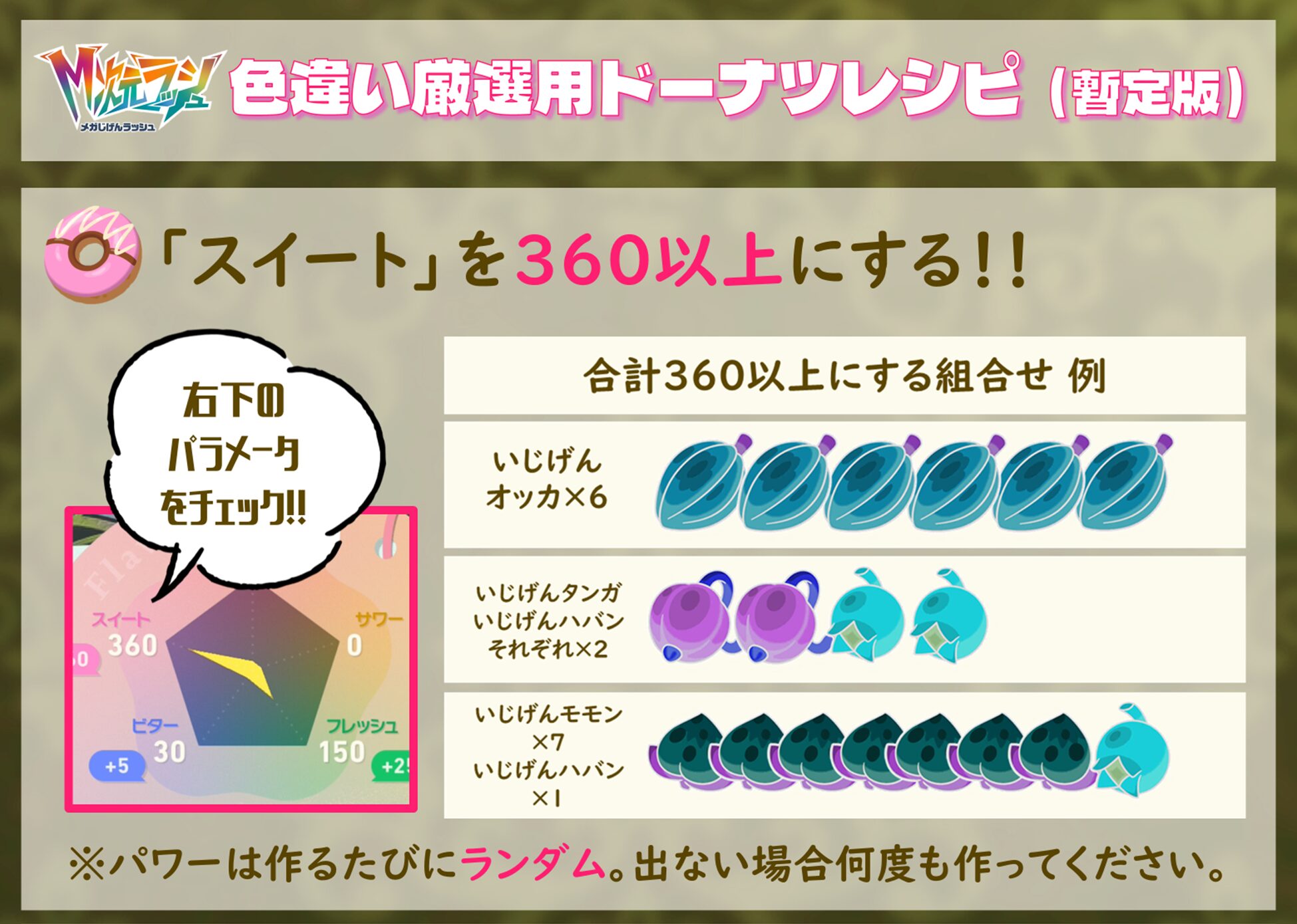 - スイート:かがやきパワー最適レシピ(色違い厳選向け)