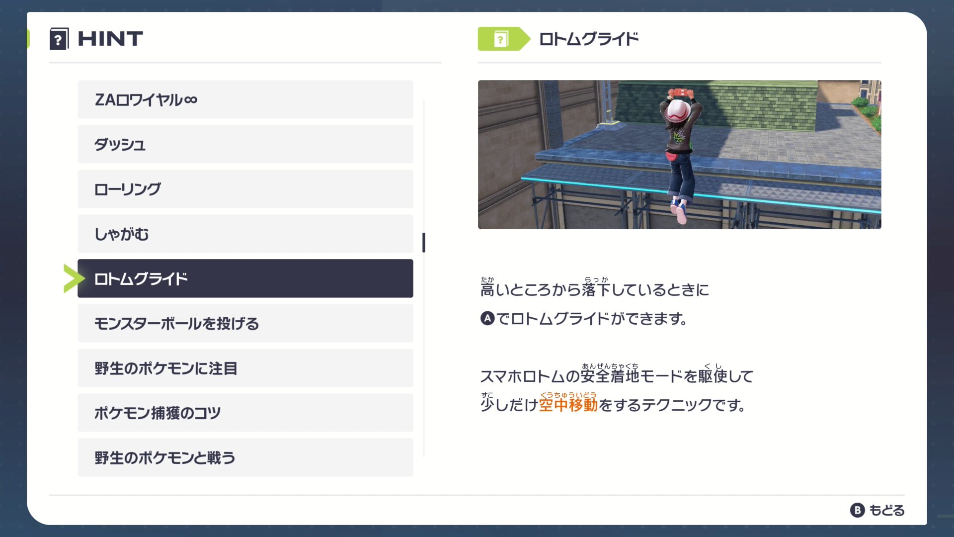 一部の建物の屋上に上るには別の建物からロトムグライドを使って飛び移る必要がある箇所が存在します。