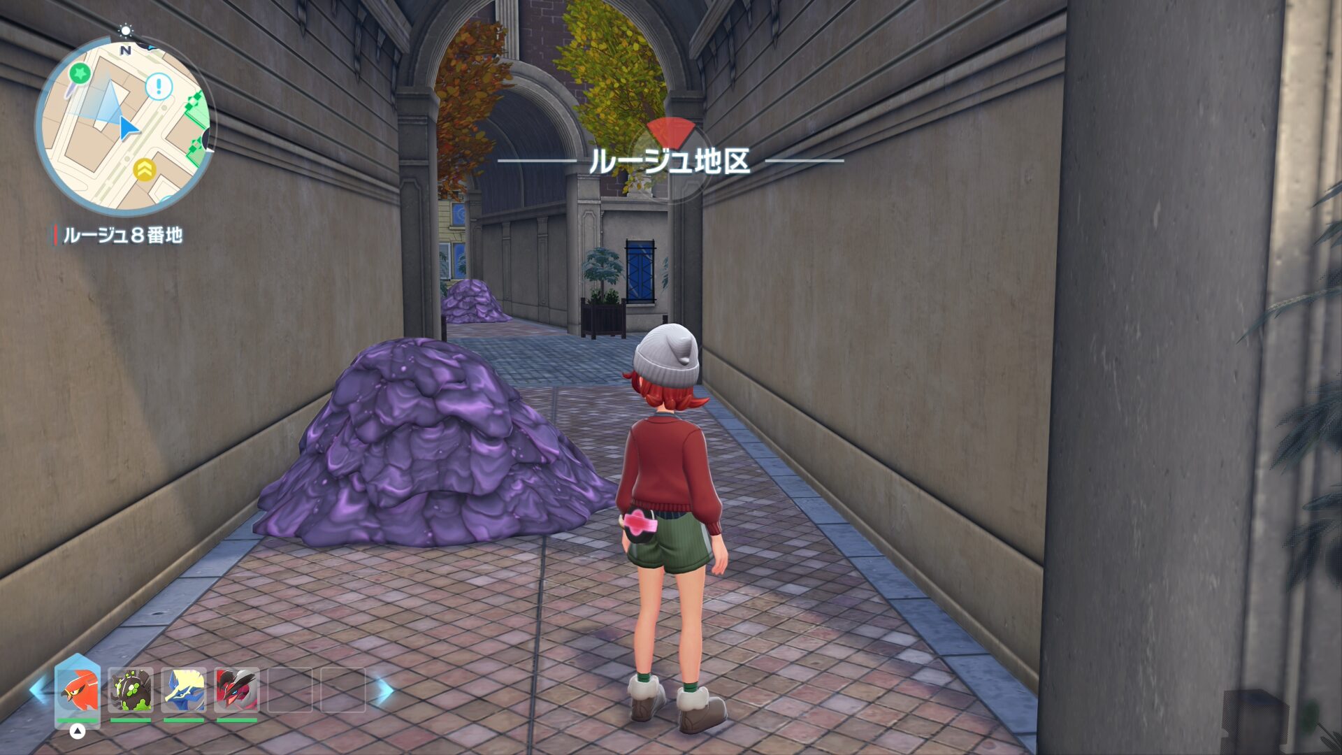 ルージュ8番地の敷地内に入れるアーチ型の入り口まで移動します。