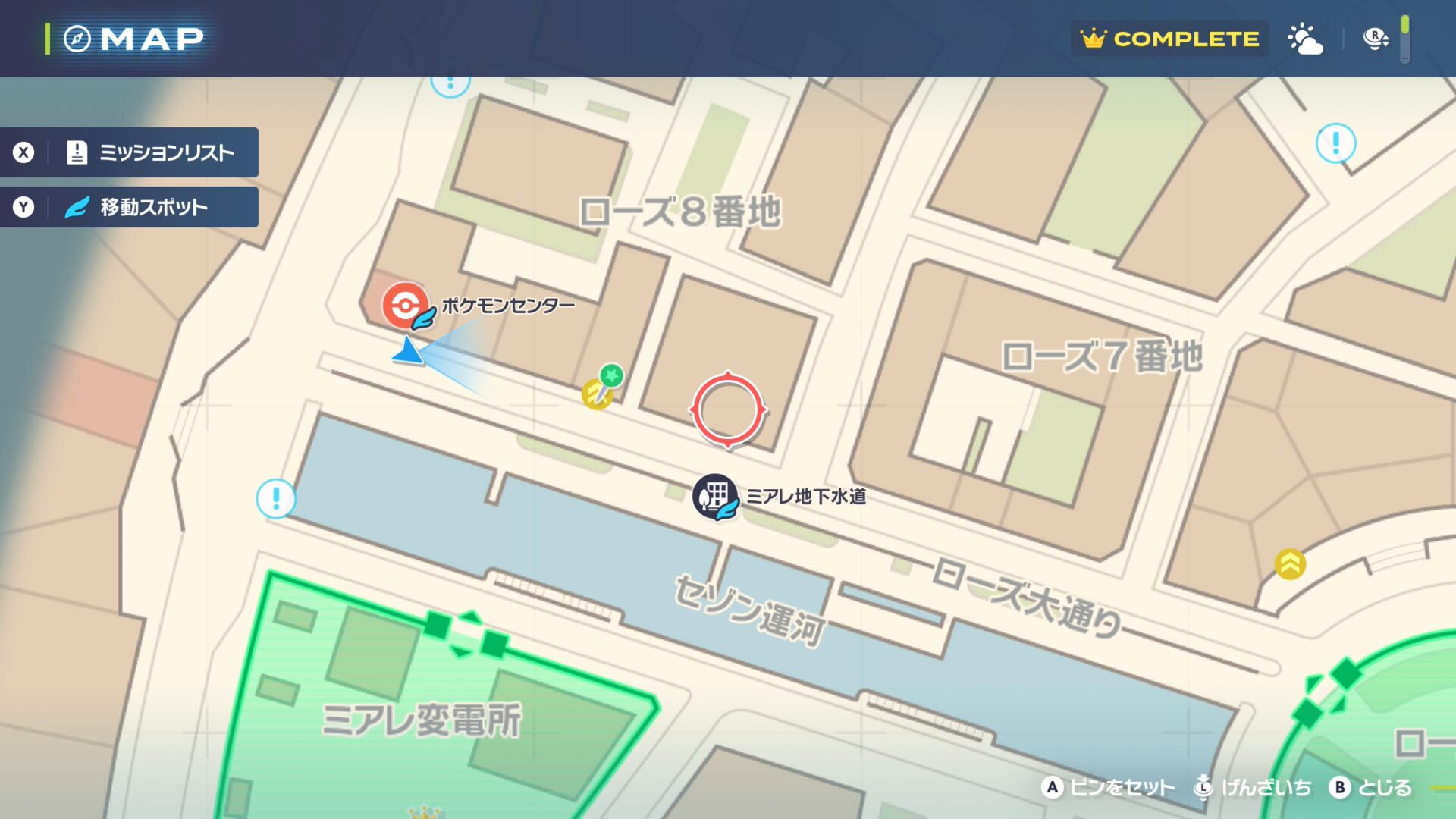 最寄りのファストトラベルである「ポケモンセンター:ローズ」まで移動します。