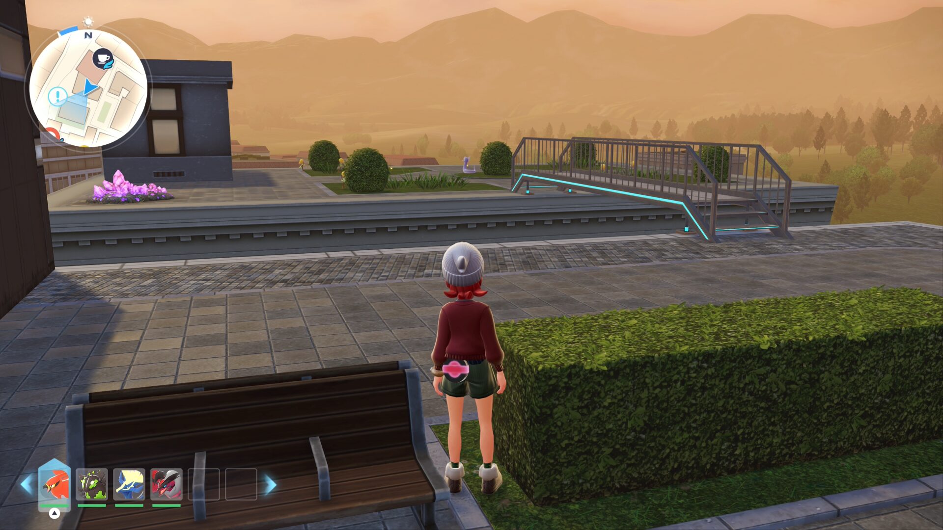放置で色違い厳選ができるベンチが設けられており、ミニリュウも常に視界に収まります。