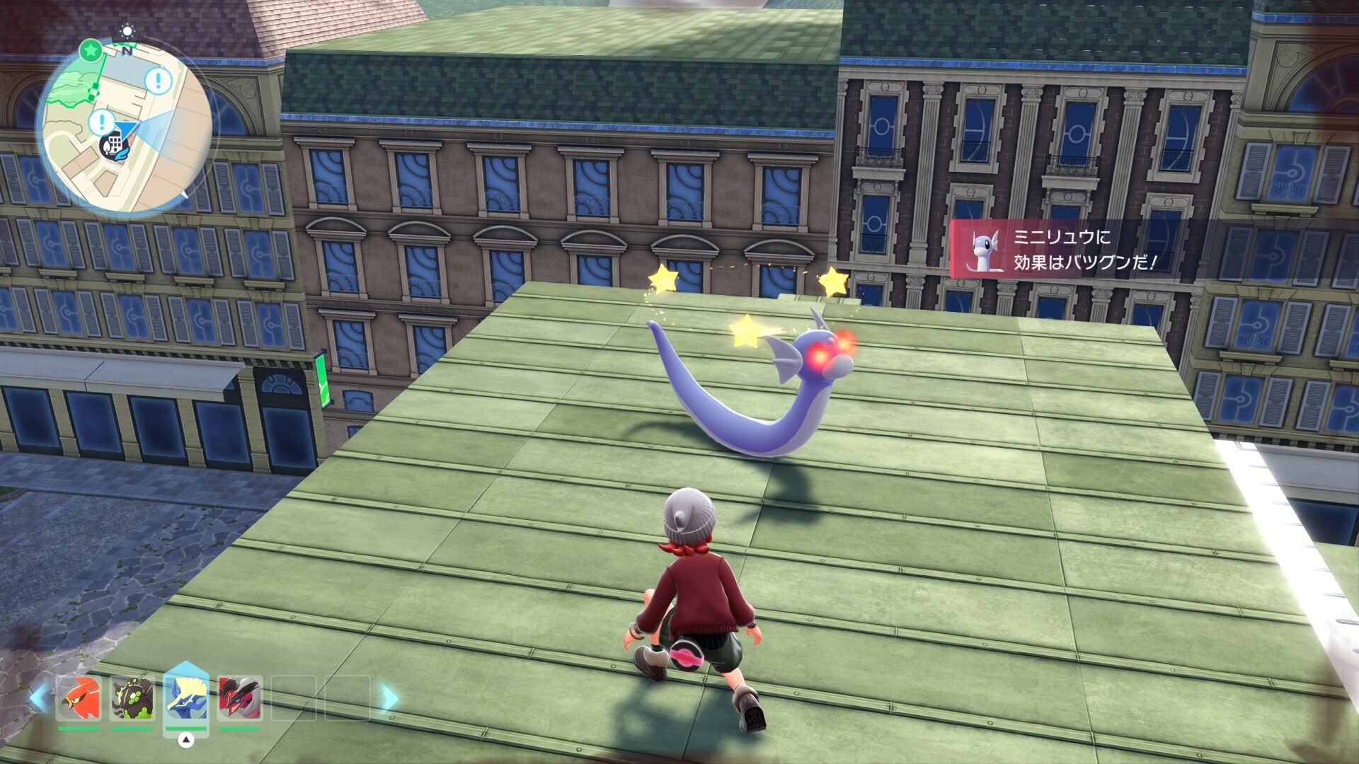 ミニリュウは特定のワイルドゾーンではなく建物の屋上に出現します。