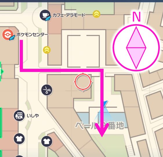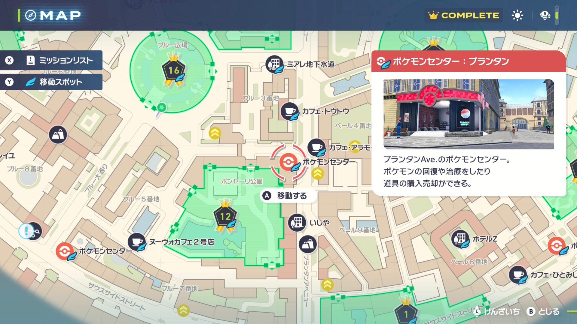 最寄りのファストトラベルである「ポケモンセンター:プランタン」まで移動します。