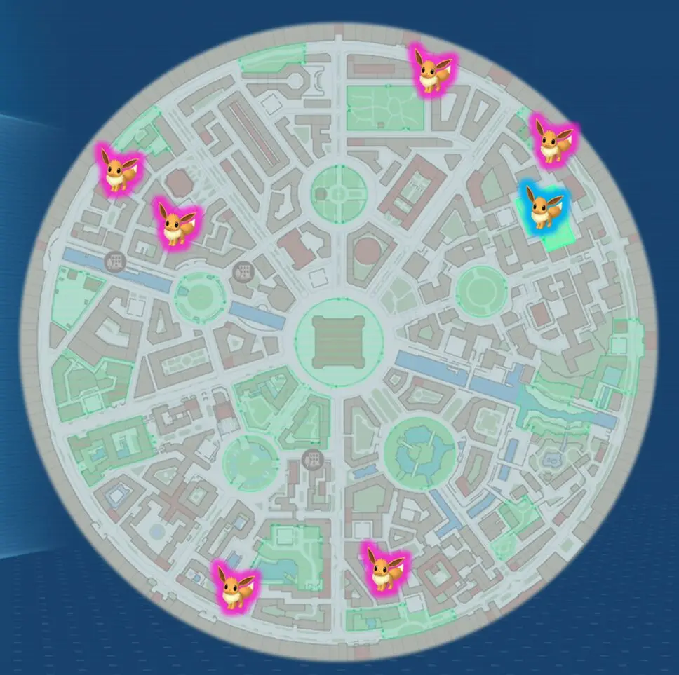 イーブイの色確認はゾーン外からでも音などで確認できますが、イーブイの出現位置が毎回変わるため定期的にゾーン内に入って見に行ってみてもいいでしょう。