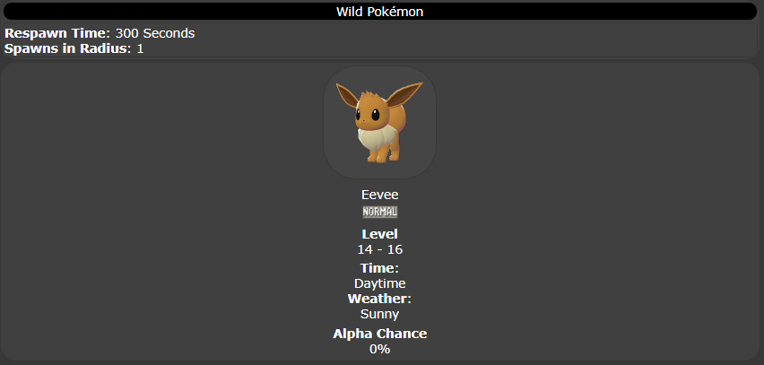 19番ワイルドゾーンを除き、街中に出現するイーブイは「昼の晴れの日」のみ出現します。