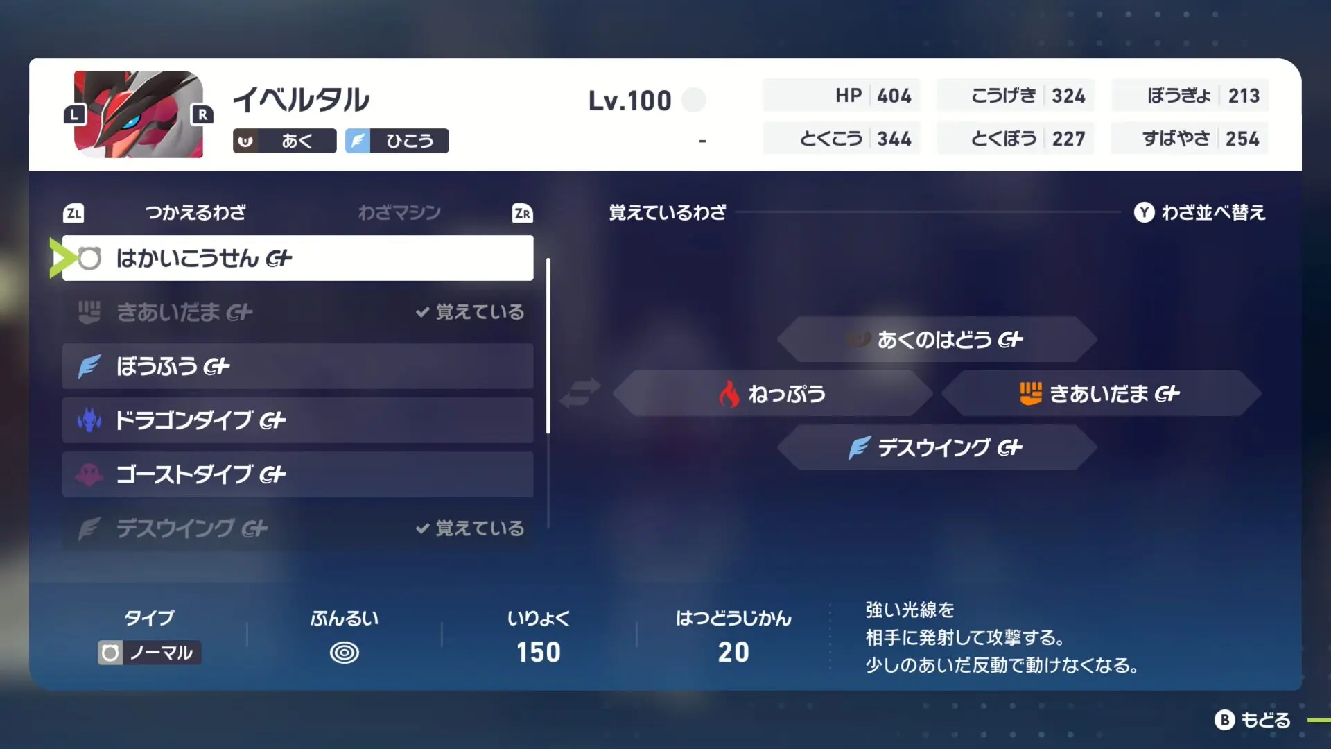 専用技「デスウイング」により、高火力を維持しながら自己回復できるため、連戦中の安定感が非常に高いのが特徴。