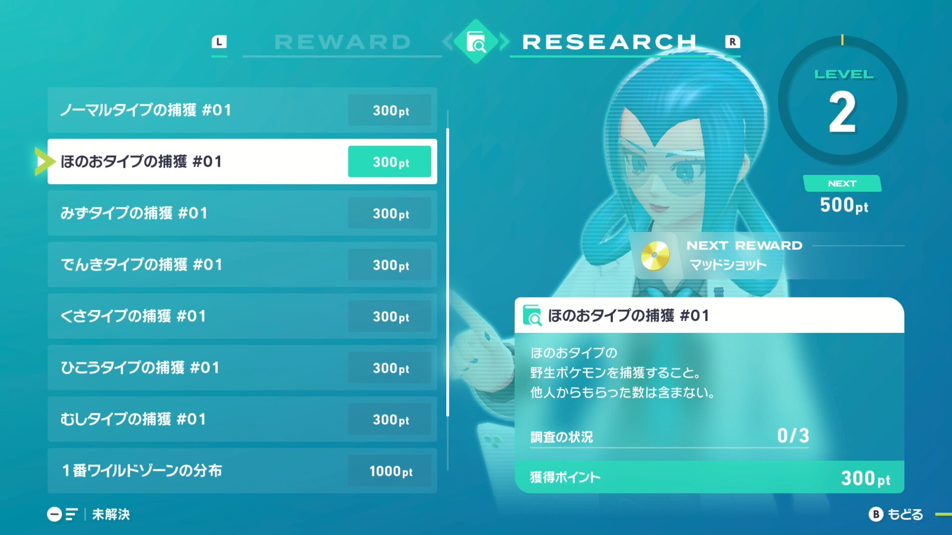 というのも、リサーチの加算対象は基本的に“研究進行=図鑑登録”に紐づいているためです。序盤からフィールドを広く歩き、捕獲行動を優先しましょう。