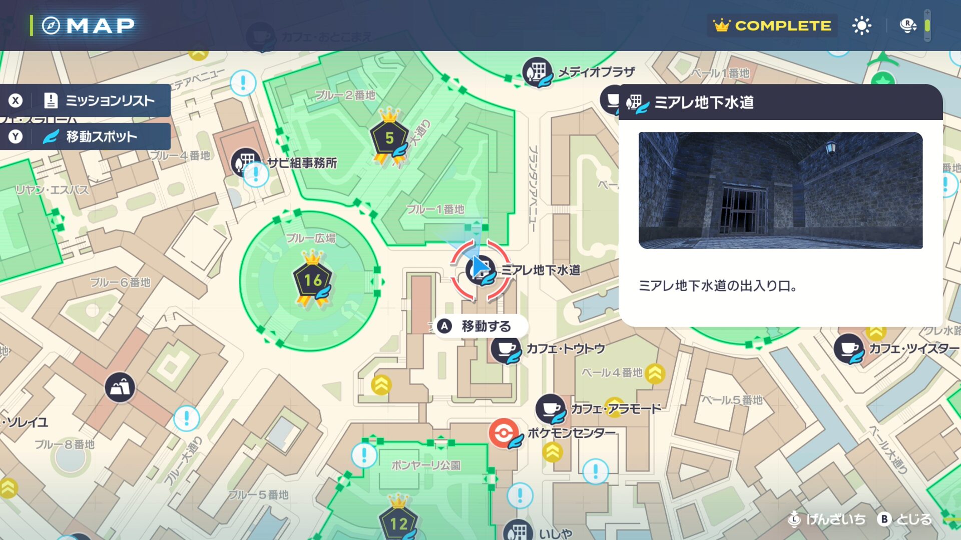 ちなみに地下水道の入り口は5番ワイルドゾーン内から行くのが分かりやすいです。