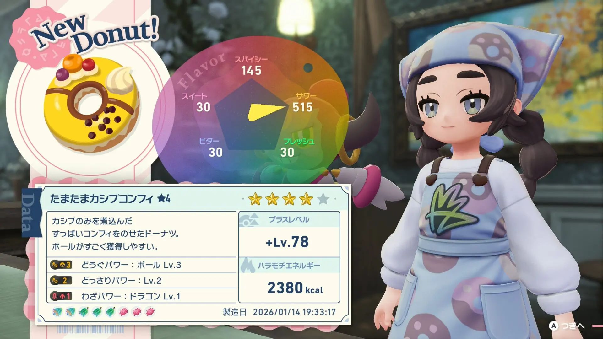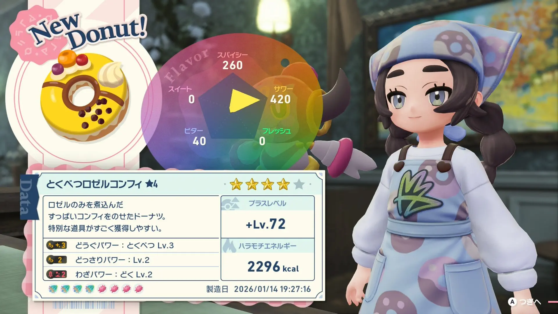 • ドーナツの色とパワーは一番フレーバーの数値が高いもので決まる