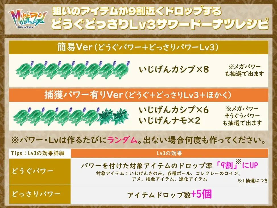 1. どうぐパワーの内部仕様(Lv3で9割以上狙いのアイテムがドロップ)