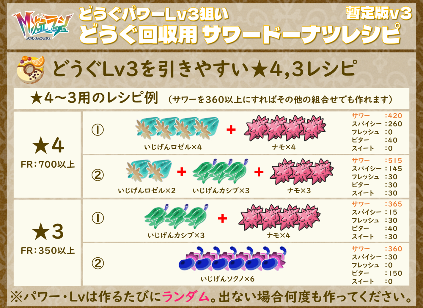 3. どうぐパワーLv3を狙えるサワードーナツレシピ