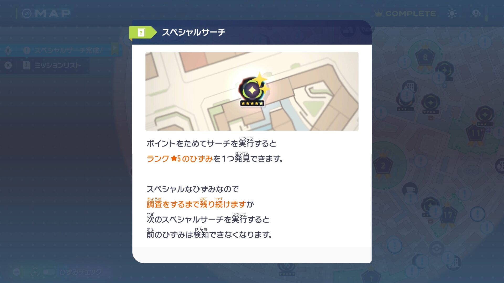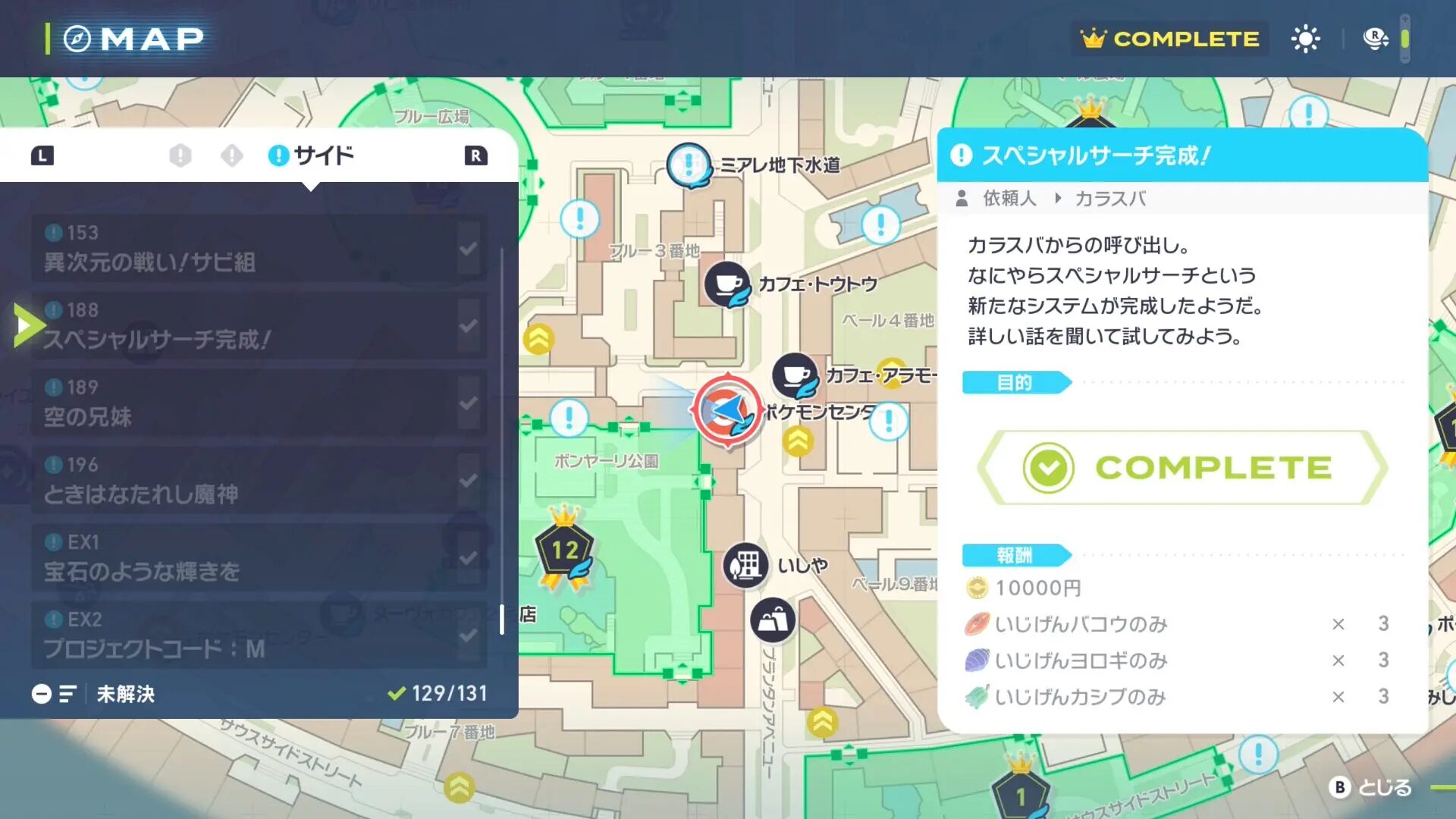 - 上記クリア後、サイドミッション188「スペシャルサーチ完成!」をクリア