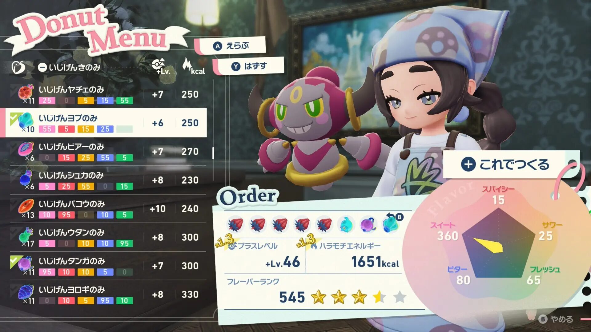 おススメは「色違い確率・捕獲率」がアップするドーナツです。以下レシピ例を掲載します。