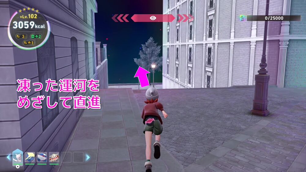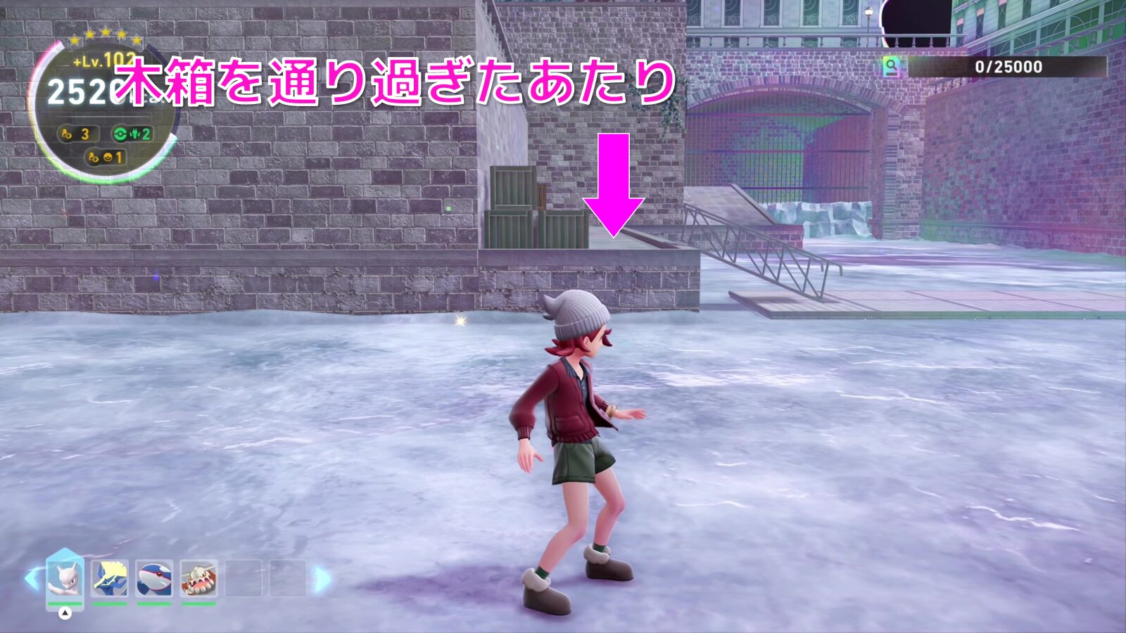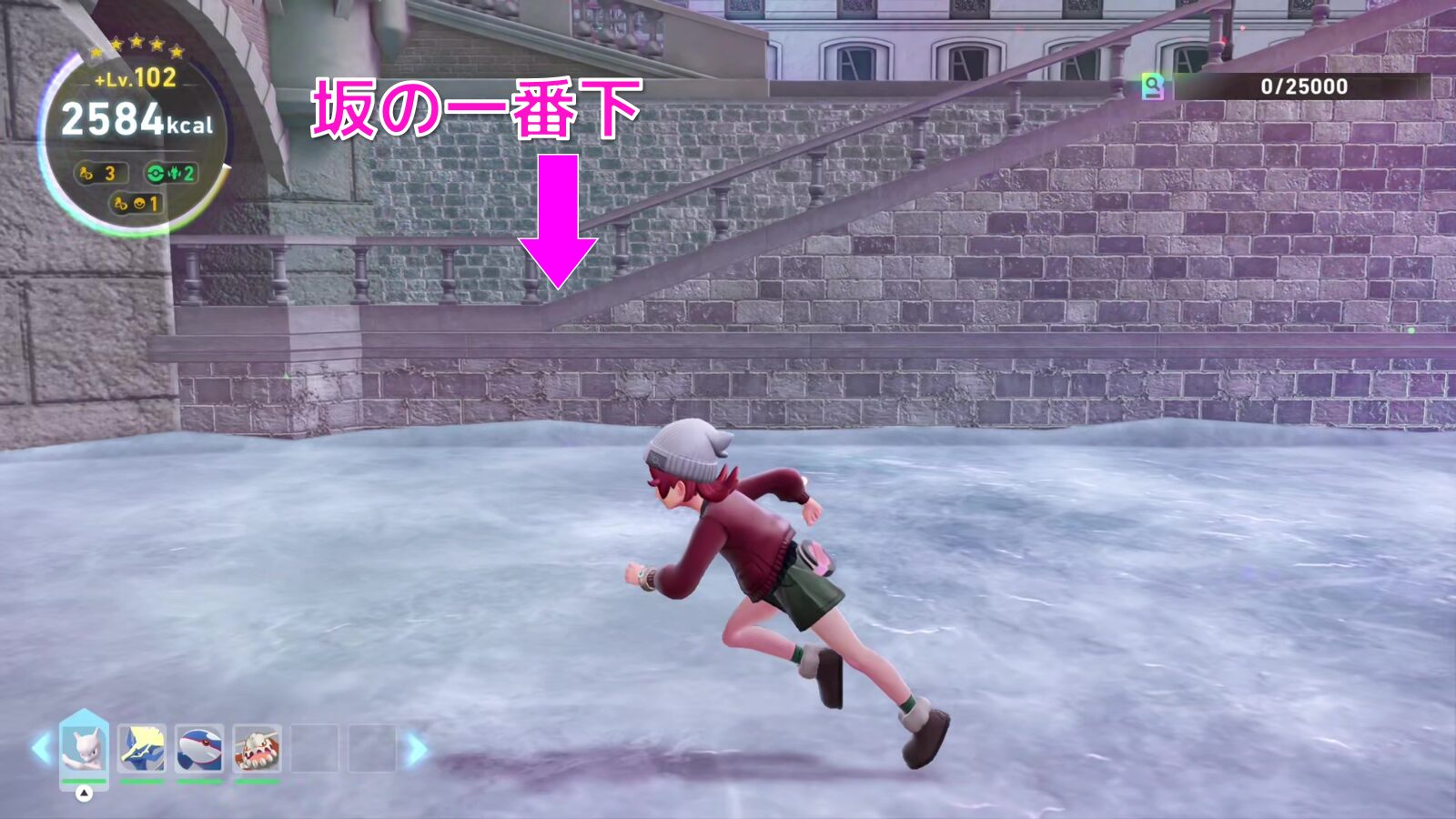一度ベンチから離れて階段付近まで行ったあと、再度近づいてシンボルをリポップさせます。