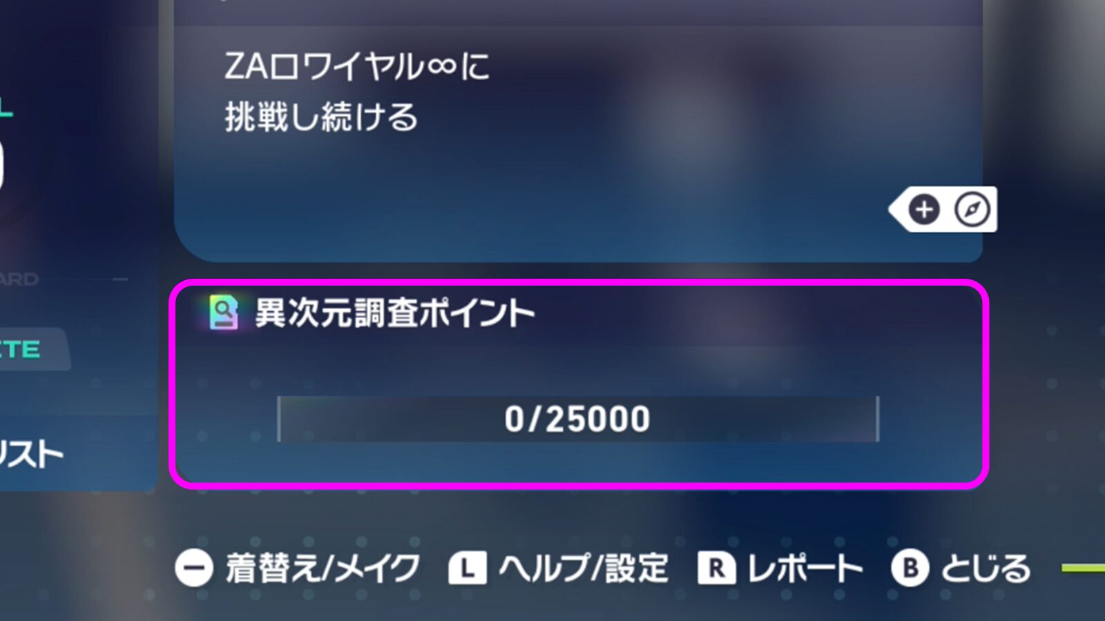 異次元調査ポイントを貯めるには異次元ミアレに行き、調査タスクをこなす必要があります。