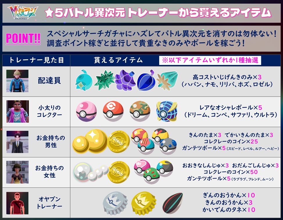 異次元きのみやオシャボ、進化アイテムなどを大量に入手することが可能です。