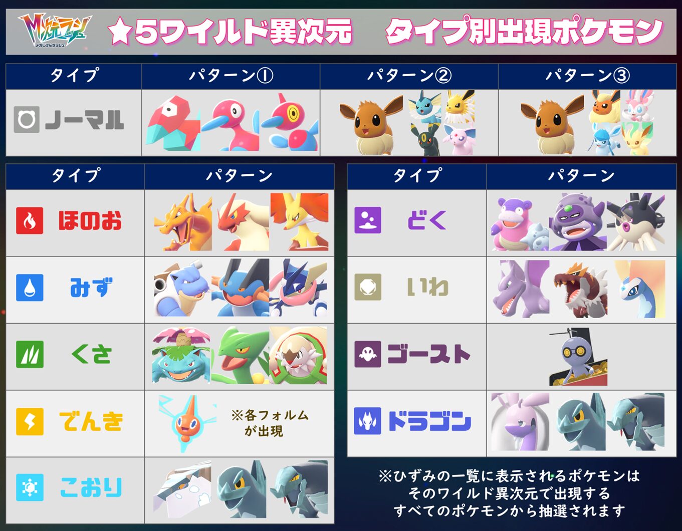 ★5ワイルド異次元で出現するポケモンの組合せパターンです。
